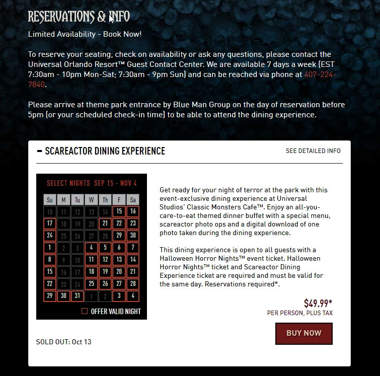 O valor é de $49.99 por pessoa e as reservas podem ser feitas no site do Halloween Horror Nights com antecedência, pois esgotam.